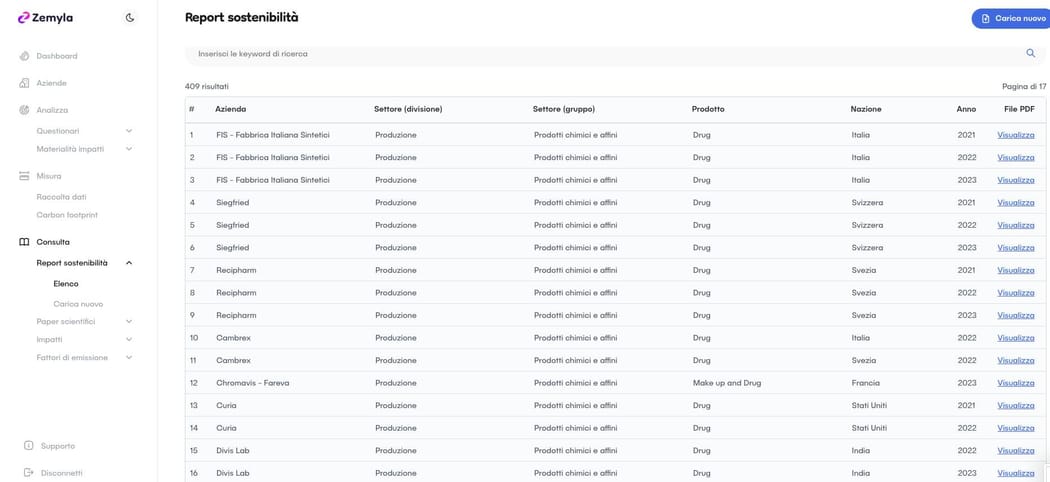 Ad esempio il Database dei bilanci di sostenibilità in Zemyla elimina la fatica di download lenti, PDF da 50 MB o formati poco leggibili: ogni bilancio è immediatamente consultabile online, con struttura semplificata per la lettura e possibilità di confronto rapido tra aziende, anni e KPI. Così la sostenibilità diventa finalmente uno strumento operativo, e non un labirinto documentale.